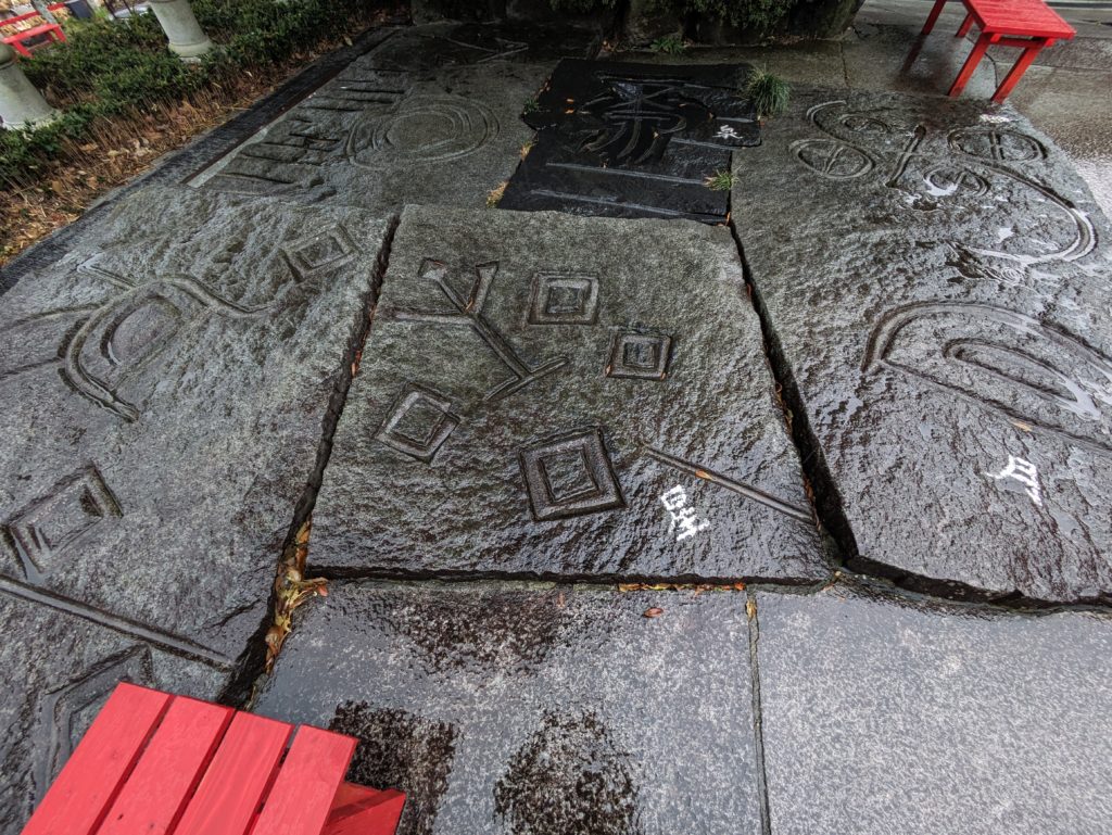 境内のいたるところにある縁起石は60個あります。